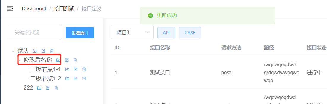 不过后续这里还会有细节需要优化,比如确认弹框、顶层节点不可删除、节点下的所有资源(API和Case)逻辑删除等等。