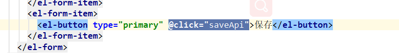 最后实现新增接口的方法saveApi,当然了,在【保存】按钮上的@click="saveApi"点击事件不能少了。