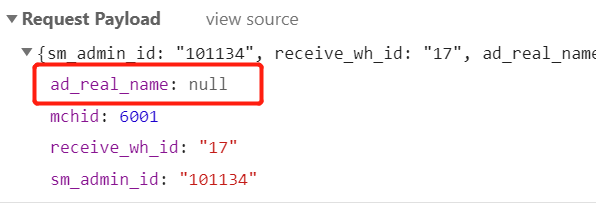 往后开发的时候发现还是有些问题,F12看了下,传递到接口的值ad_real_name还是null。