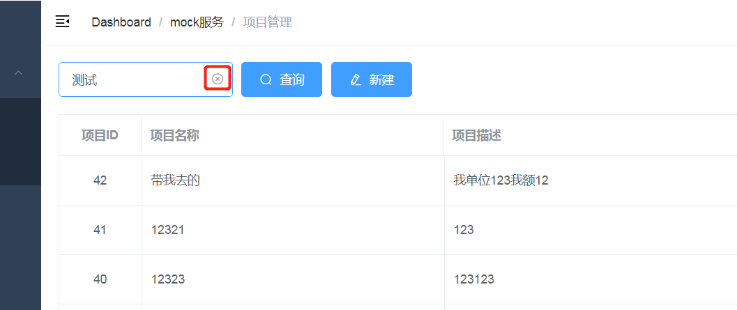当projectName 是空的时候,如果点击了查询按钮,就重新请求下列表页。