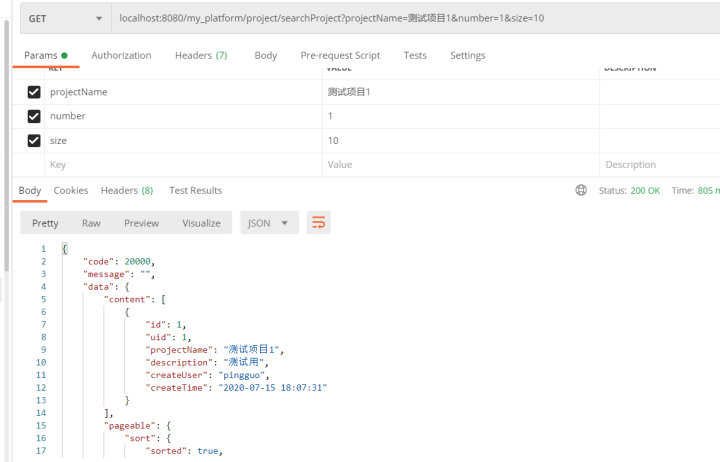 代码里实现的是可以通过项目名称或者项目id来查询,以项目名称为例: