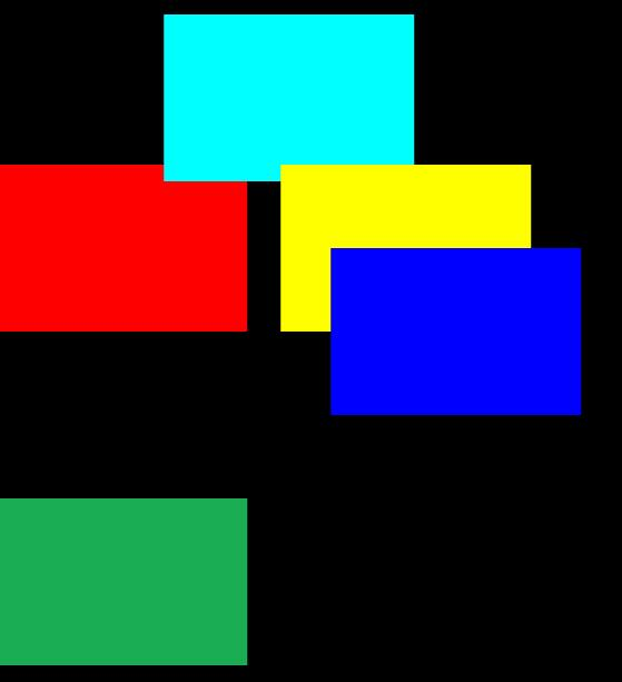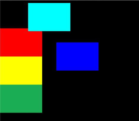 此时我们以第三个盒子,黄色的盒子为例,此时我们将它的相对定位注释掉,它的运行结果是这样的。