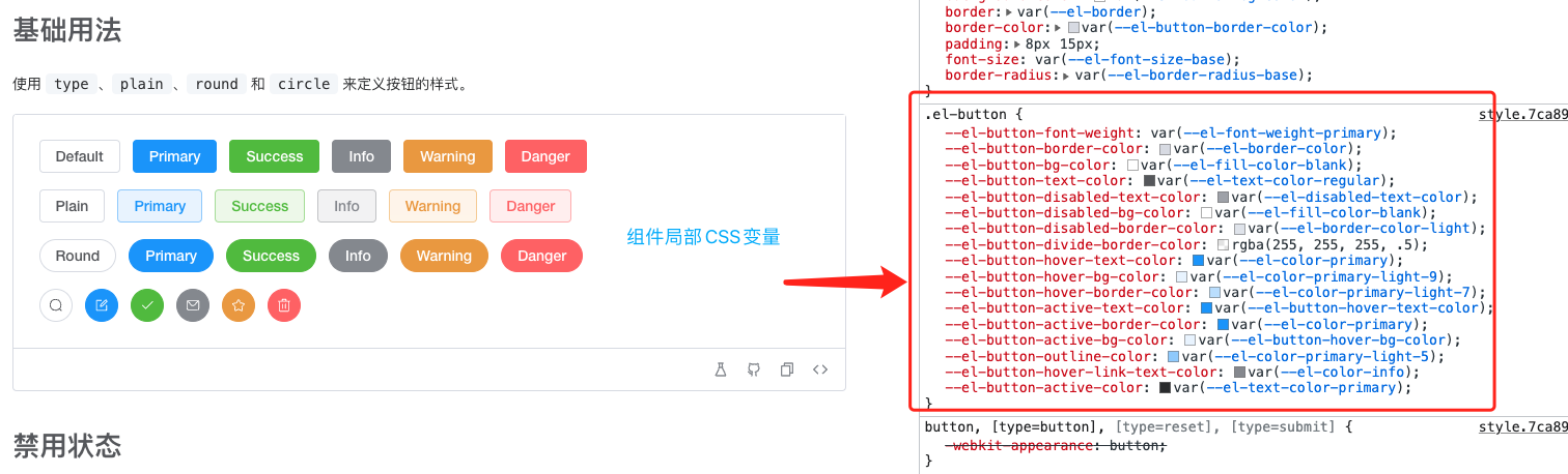 实现组件 button 新增功能和自定义UI换肤,使用 SCSS 变量和 CSS 自定义属性,参考 element-plus 源码造轮子