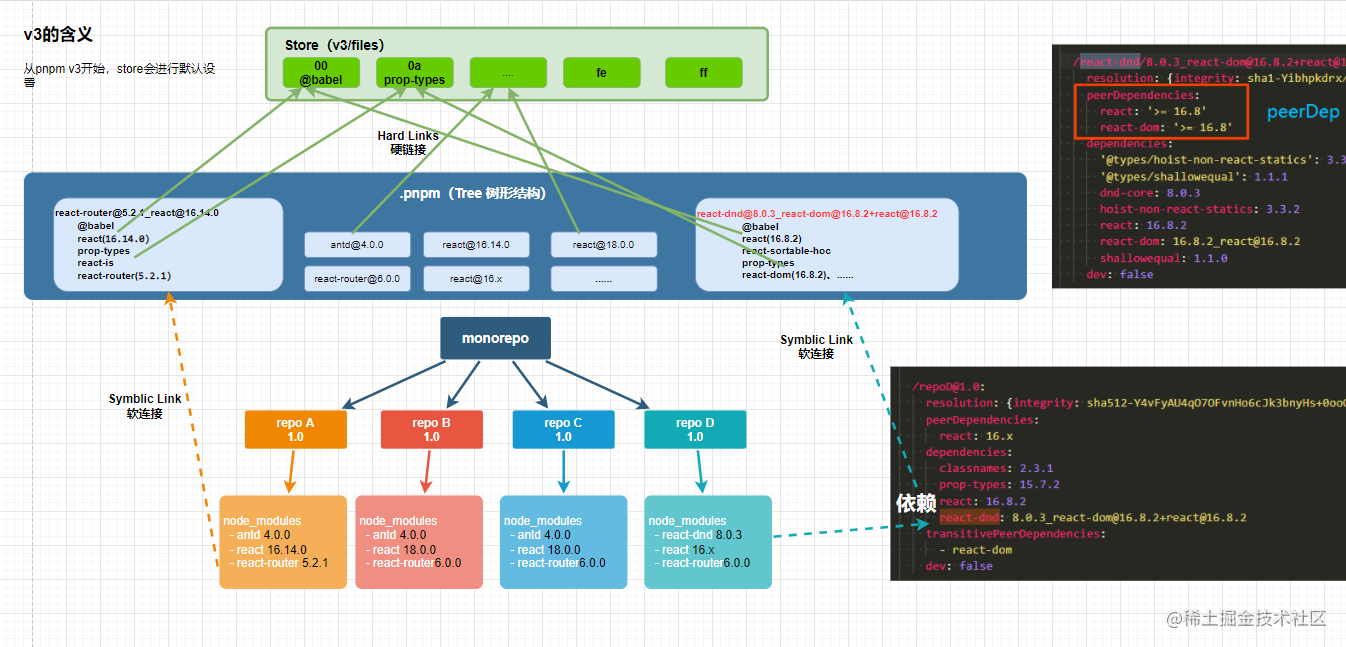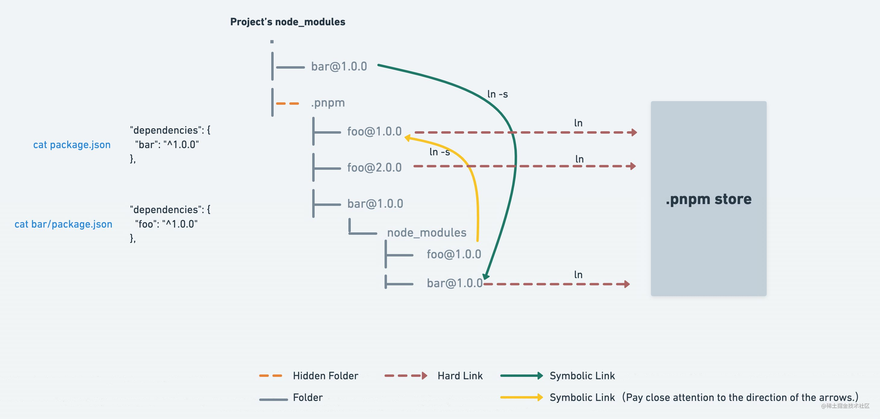 这种场景在monorepo 多包场景下尤其明显,这也是yarn workspace经常被吐槽的点,另外扁平化的算法实现也相当复杂,改动成本很高。 那么pnpm是如何解决这种问题的呢?