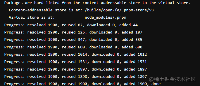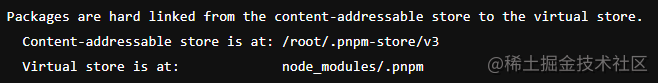 pnpm install的安装过程中,我们会看到如下的信息,这个里面的Content-addressable store就是我们目前说的Store