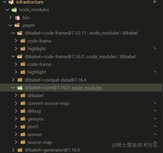 我们称.pnmp为虚拟存储目录,该目录通过<package-name>@<version>来实现相同模块不同版本之间隔离和复用,由于它只会根据项目中的依赖生成,并不存在提升,所以它不会存在之前提到的Phantom dependencies问题!