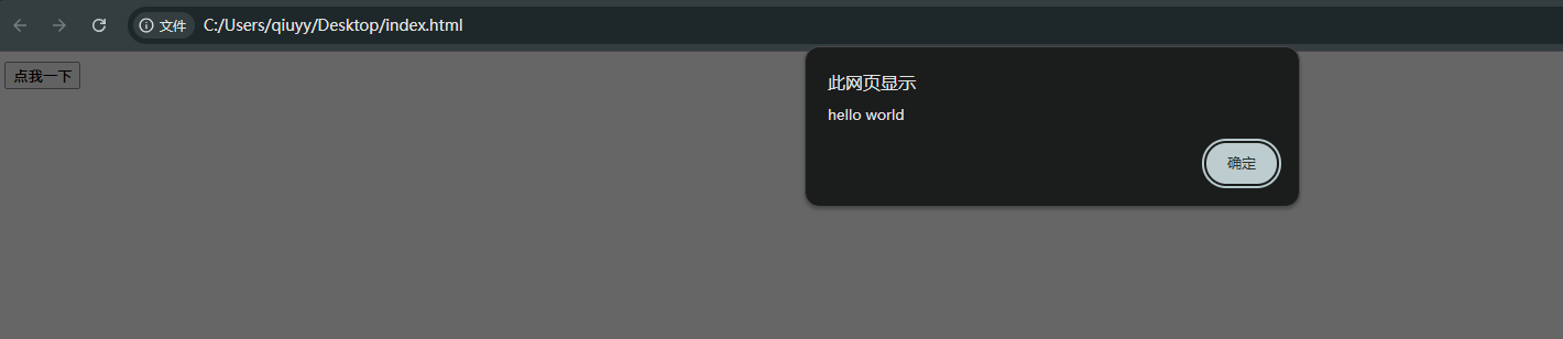 首先在本地创建一个简单的html文件index.html,当按钮被按下时显示hello world。