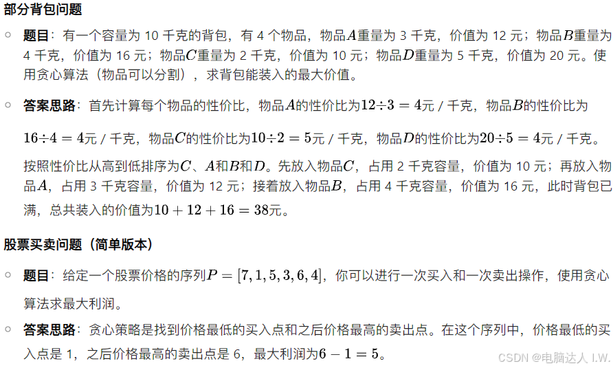 4. **替代方案**:当贪心失效时考虑动态规划(如背包问题)