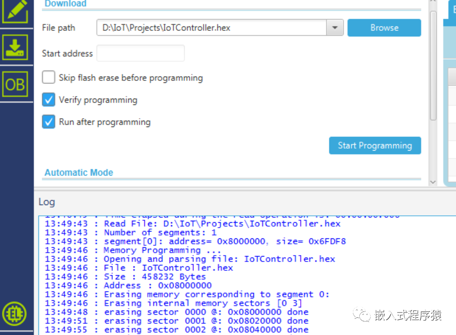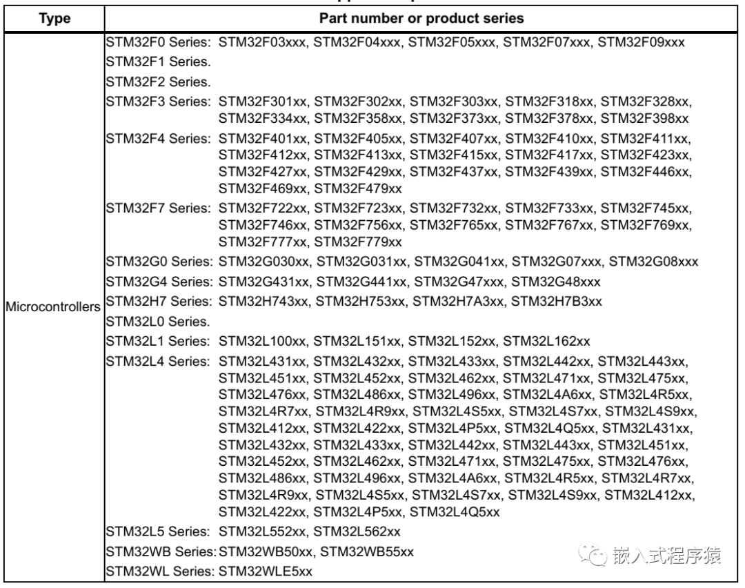注意红色框部分地址有误,程序中代码需要注意,目前支持几乎全系列STM32。像F0, F1,F4,F7,H7,包括比较新的G系列也都支持,还有L系列和W系列。此bootloader可配合ST官方的STM32CubeProgrammer上位机使用,这样大大节省了开发时间,当然你如果要做更好的bootloader可以根据这个思路自己在添加更多功能。
