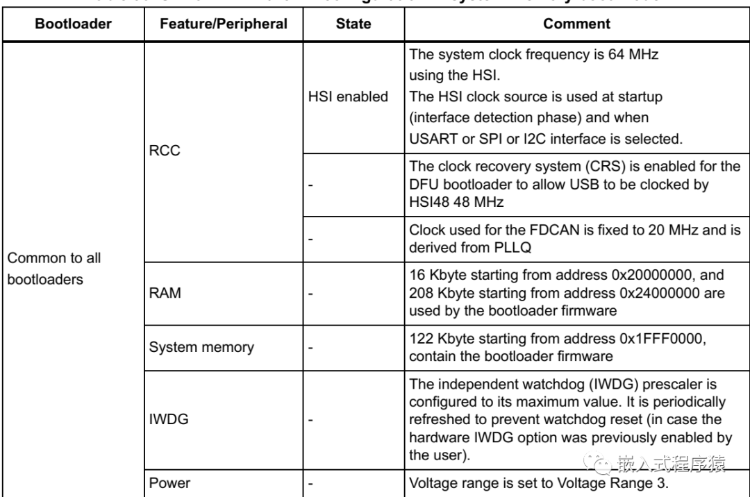 相信用过STM32芯片的童鞋应该都不陌生,在芯片出厂的时候,意法在内部系统固化了bootloader,并且支持多种接口像UART,I2C,SPI,USB,CAN等等,可用于下载升级用户程序,就我使用的H743来讲可支持接口如下: