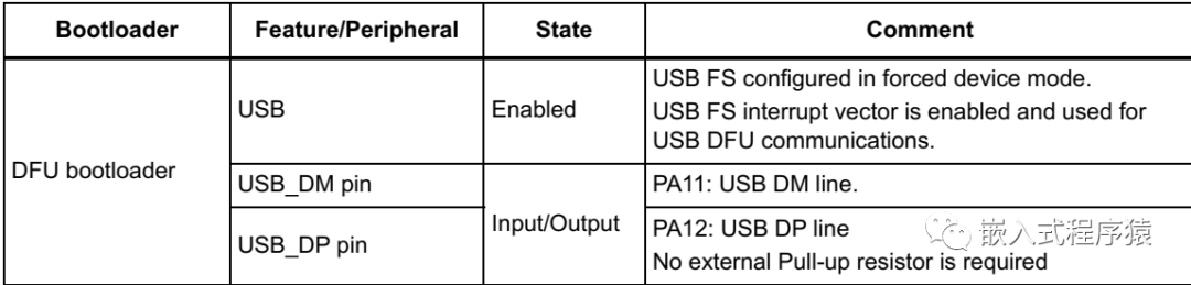 通过用户应用程序跳转则不需要配置boot引脚,而一般通过应用程序跳转比较方便,尤其是带有不好拆卸外壳的产品,我们通过应用程序跳转极为方便,固以后者为例来说明。通过boot引脚跳转的配置说明大家可以参考官方文档AN2606.
