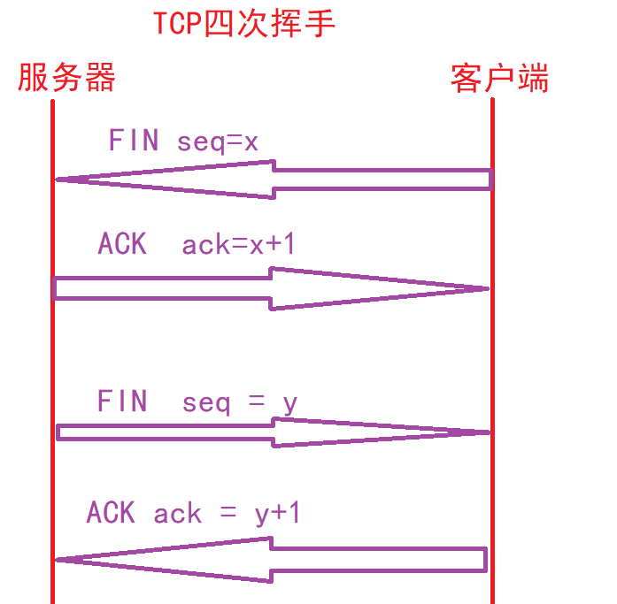 第一次握手:客户端向服务器请求断开连接,当服务器收到客户端终止连接请求的时候需要做出响应。