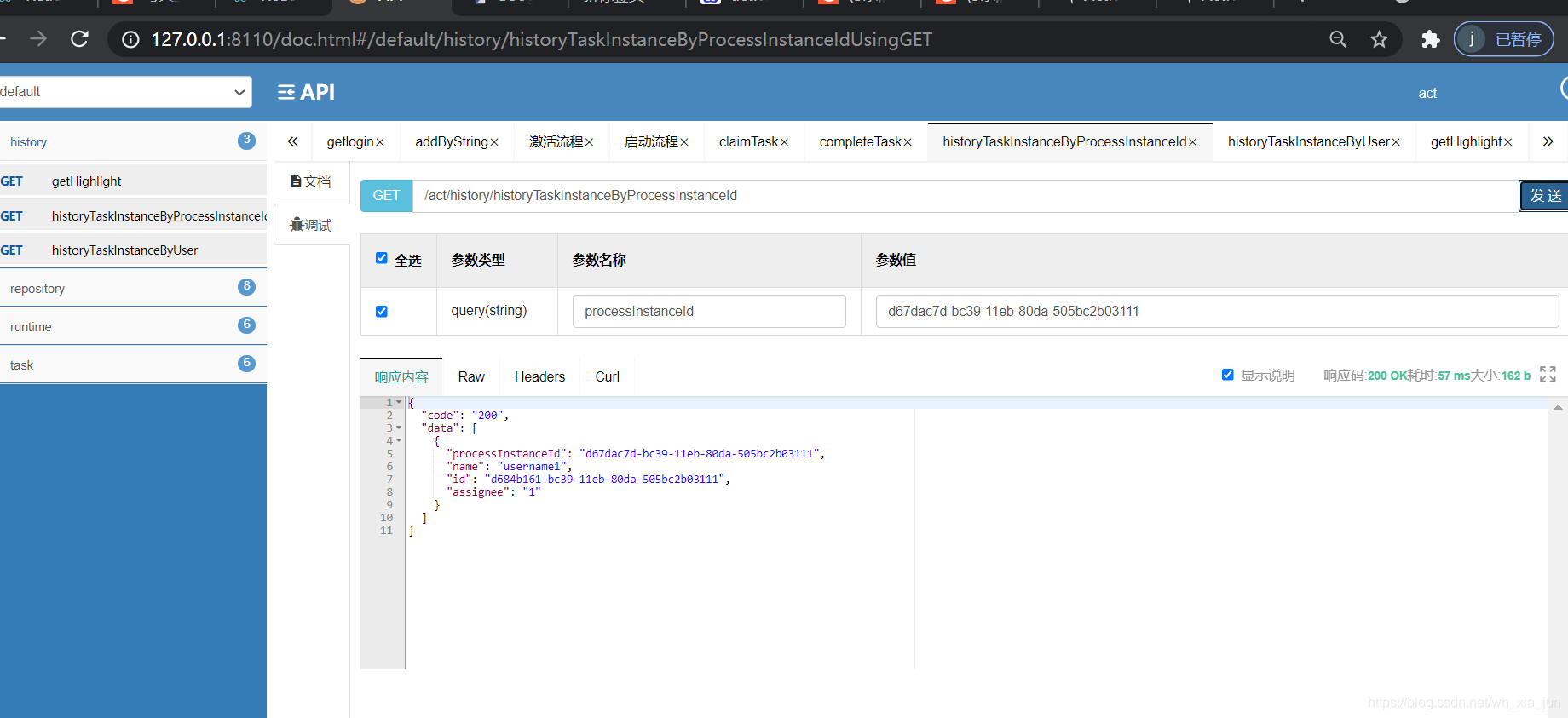 我完成的流程接口相应信息:(/report/act/history/myFinishTask)