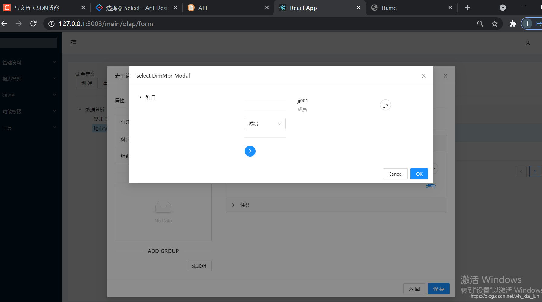 4、上一步获取到的是 :一个特定表单、特定布局类型、特定组上布局信息,考虑到在一个表单 的特定布局上,所有组的类 布局信息是一样的,应该也有其他办法获取相关数据。现在遍历上一步获取到的布局信息,获取一个组内的所有维度成员信息。