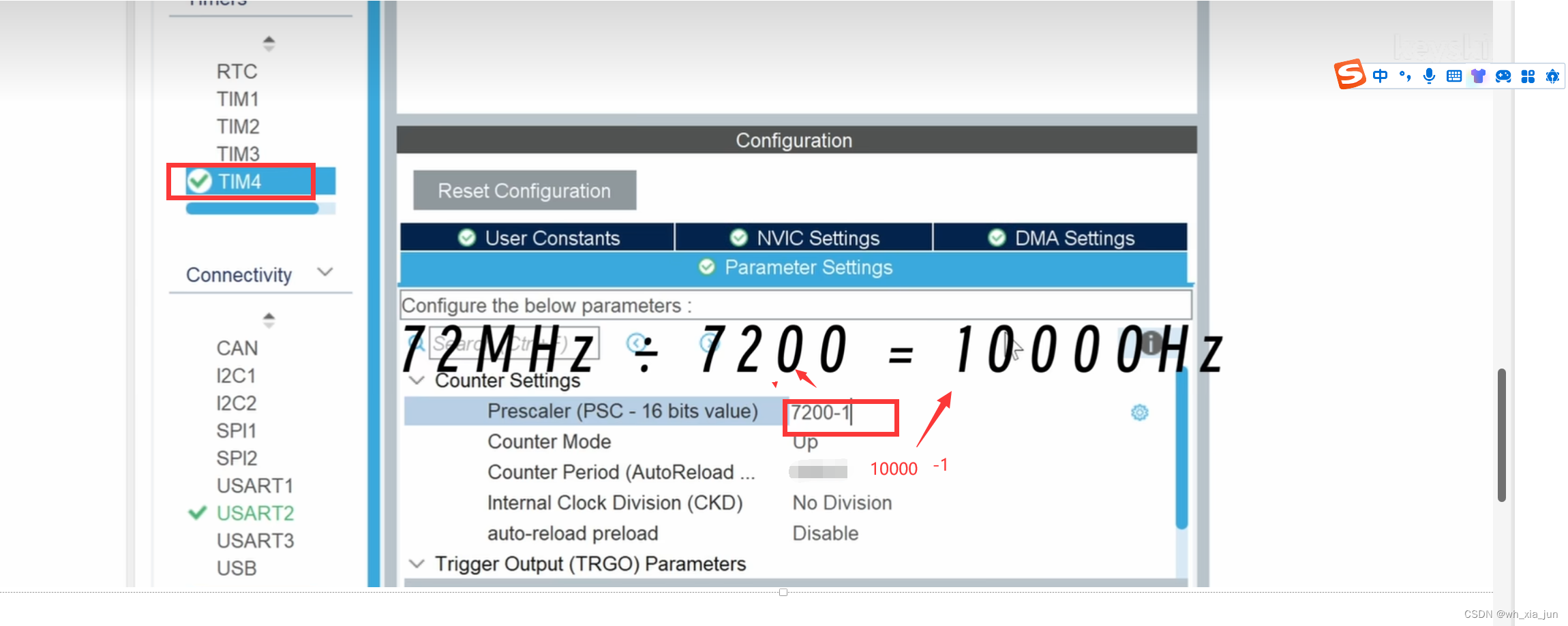 定时时间 = 定时器频率 / 倍频 /装载周期