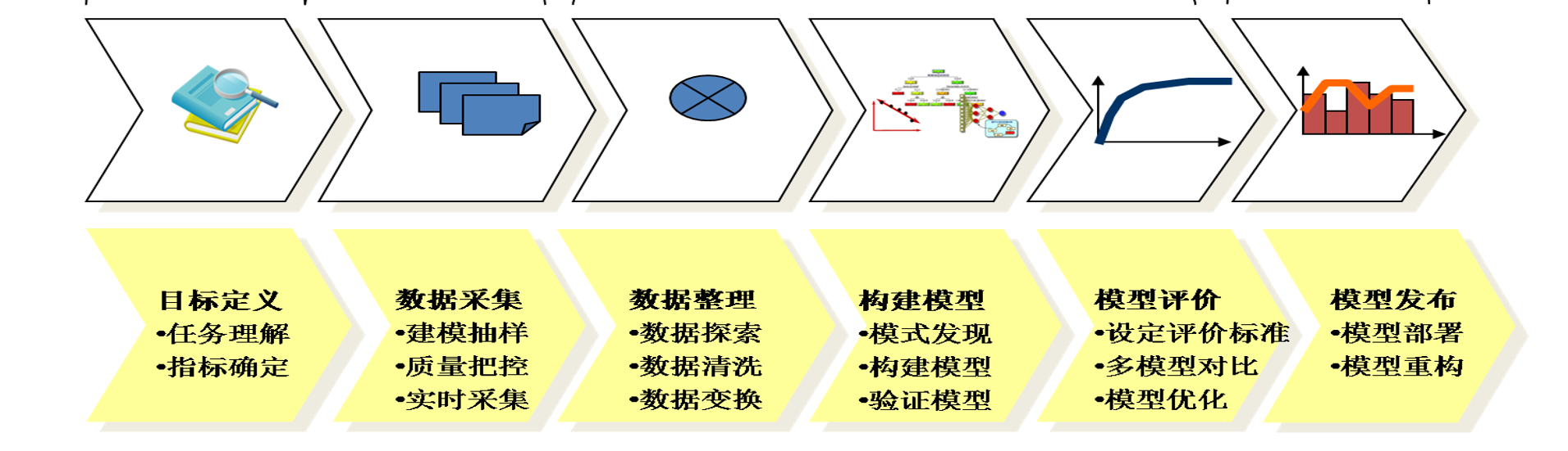 基于数据挖掘的通用框架,Python 数据分析可分为 6 个关键步骤,每个步骤均有对应的工具与方法支撑: