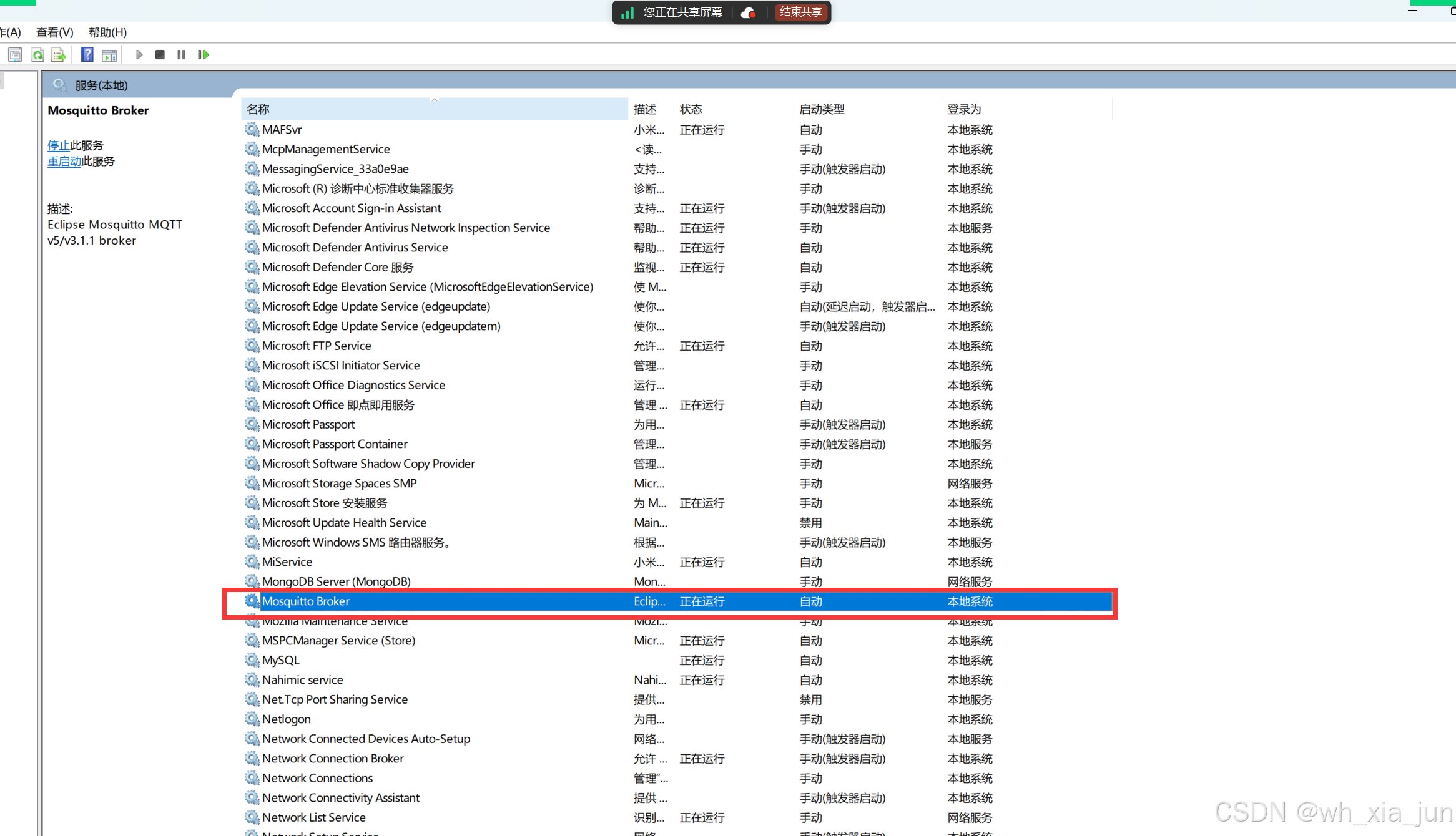 4.部署完后重启下mqtt服务,win+r后输入services.msc找到Mosquitto Broker点击重启动即可。