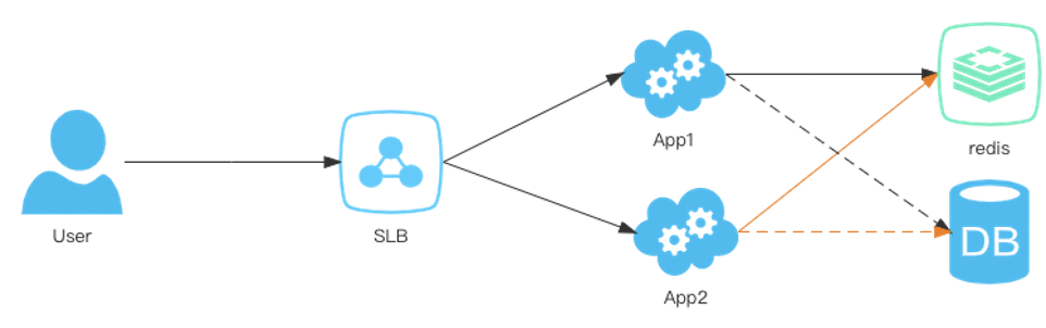 - 2.0时代,业务量有了一定的增长,数据库出现性能瓶颈,使用分布式缓存进行热点数据的访问加速。