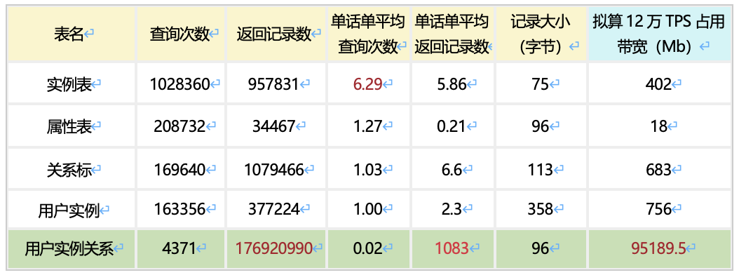 监控数据显示,一旦部分表从高速缓存中移出,组网的万兆带宽会立即被占满。这表明,单从业务场景和监控数据进行分析已不足够,需要结合更细致的业务访问操作进行综合分析,并对每张表的访问频率和带宽资源占用进行量化。