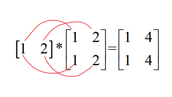 向量跟同列数的矩阵对应相乘,即向量的每个元素与矩阵的对应列的所有元素相乘。如 a=[1,2] 和 b=[1,2;1,2] 中矩阵 a 的 1 对应乘矩阵 b 的第一列 [1;1],不同于数学中的矩阵乘法