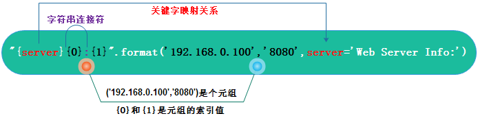 print("{server}{1}:{0}".format(8888,'192.168.1.100',server='Web Server Info :'))
