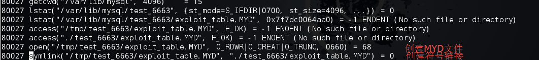 以下两个操作间存在竞态条件漏洞:[pid 1463] lstat("/tmp/disktable/poctab1.MYD", {st_mode=S_IFREG|0660, st_size=0, ...}) = 0