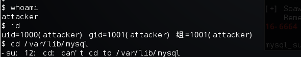 设置SUID的mysql_suid_shell.MYD会以其owner权限运行,但是这有个坑,就是bash对suid有保护,运行mysql_suid_shell.MYD时需要加上-p选项才能真正让SUID生效(参加:http://unix.stackexchange.com/questions/116792/privileged-mode-in-bash)