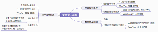 我们再回看一个关于支付接口的漏洞分类,以便进一步佐证接口安全在渗透的地位。当然如果考虑防御的话,更多考虑的是机制是协同。