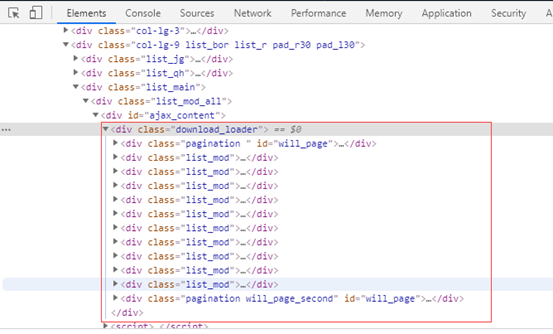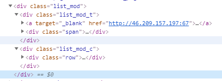 使用浏览器自带调试功能查看html框架,可以看到我们搜索结果都在“<div>”标签下,每一个“<divclass=”list_mod”>”标签是一条信息