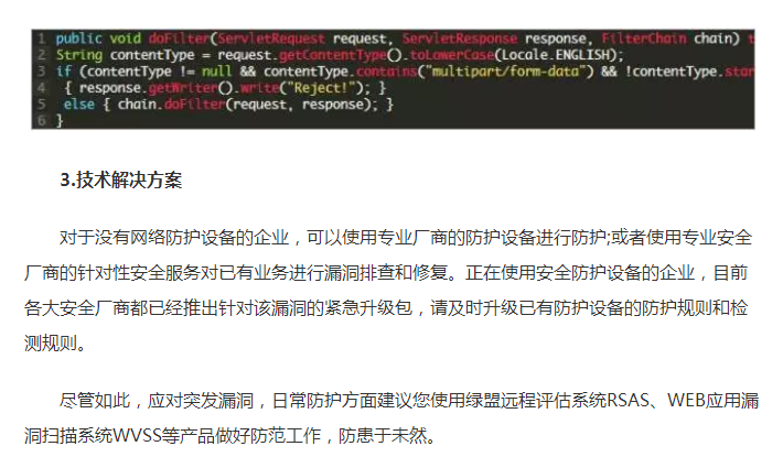 根据CNVD技术组成员单位——启明星辰公司提供的分析情况,在2.3.28及之前版本中,devMode开启时,DebuggingInterceptor类会检测提交的debug参数是否包含console、command、browser这三个MODE。通过分析代码发现,command、browser这两个MODE调用了stack.findValue方法,可构造特定数据作为ognl表达式执行,使得Apache Struts S2-008漏洞一直延续到2.3.28版本。Apache Struts官方对2.3.28以后的版本代码做了修改,加强了对OGNL链式表达式的过滤,启明星辰公司通过对其安全机制研究,发现新的绕过缺陷,并能执行远程指令完成HTTP回显。