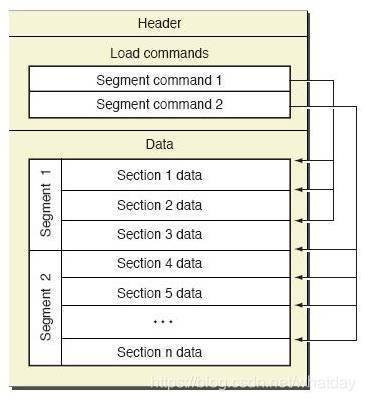 2. LoadCommands:这一段紧跟Header,加载Mach-O文件时会使用这里的数据来确定内存的分布。