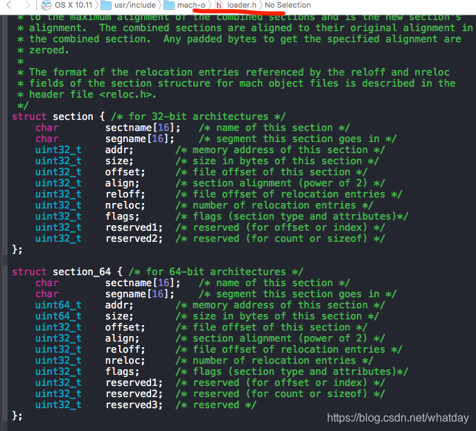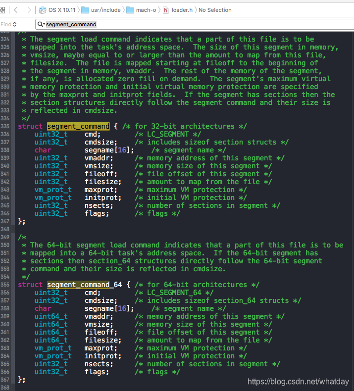` sizeof(struct segment-command) = 56byte ; sizeof(struct segment-command-64) = 72byte`