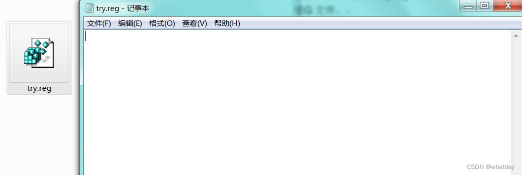 我们以记事本为例,打开记事本程序,选择“另存为”,文件名为“try.reg”,保存类型为“所有文件”(这一步很重要,否则保存后的文件会自动加上“.txt”扩展名),然后保存。于是就获得了一个空的REG文件。当然,你也可以选择直接修改记事本文件的扩展名,例如把文件“try.txt”改为“try.reg”。