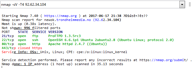 host.ip host.name 通过dns反向查询的主机名,如果没查到则为空串 host.targetname host.reason: 给出host处于现在这个状态的解释 host.reason_ttl host.mac_addr host.directly_connected host.mac_addr_next_hop host.mac_addr_src host.interface host.interface_mtu host.bin_ip host.bin_ip_src host.times host.traceroute port.number port.protocol: 有效值为tcp、udp port.service: 字符串表示的运行在端口号上的服务,该服务由服务探测阶段探测出,如果 port.version.service_dtype字段是table,那么Nmap基于端口号猜测服务;如果不是table,那么版本探测阶段能够确定是什么服务,这个字段的值被设定为port.version.name port.reason: 字符串解释处于port.state状态的原因。 port.reason_ttl port.version: 这个字段是一个表格,包含版本探测阶段返回的全部信息,包括:name;name_confidence;等,具体可参考官方文档版本探测章节。 port.state 参考:https://nmap.org/book/nse-api.htm