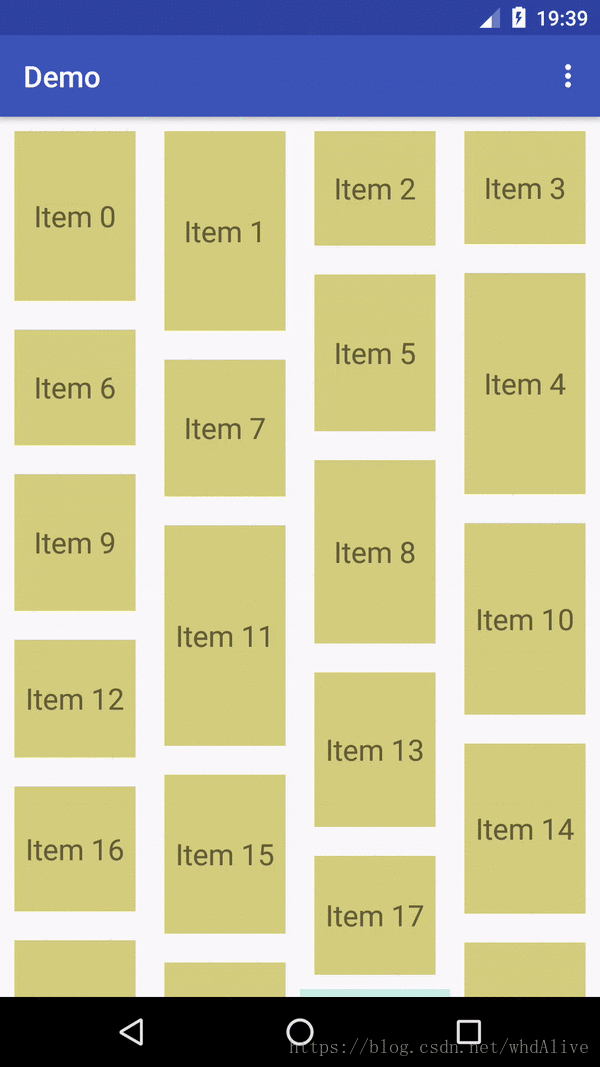 - 布局(显示方式):可通过LayoutManager(LinearLayoutManager,GridLayoutManager,StaggeredGridLayoutManager )设置;