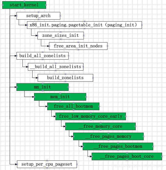 上面绿色部分的流程初始化pglist_data和zone: