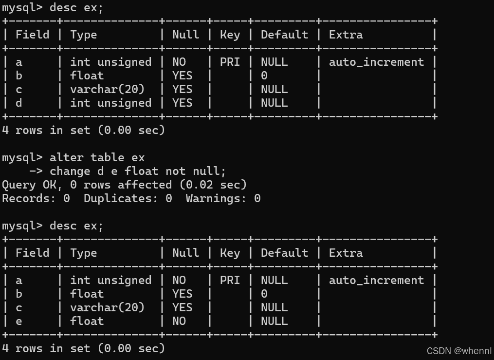 column2(字段2)datatype(数据类型)contrai(约束条件),