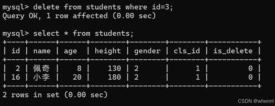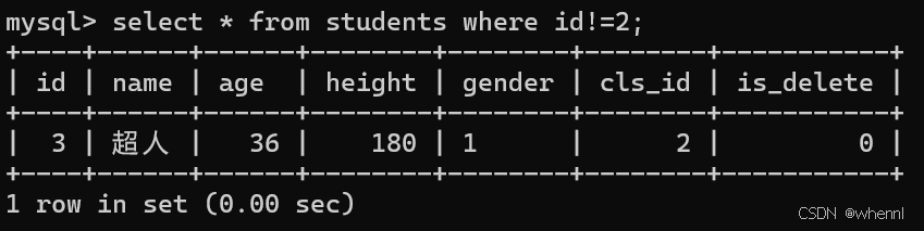 示例2:删除id是1的学生的数据【报错,不能加条件】