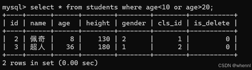 示例:在学生表中查询年龄在8-12岁学生的信息