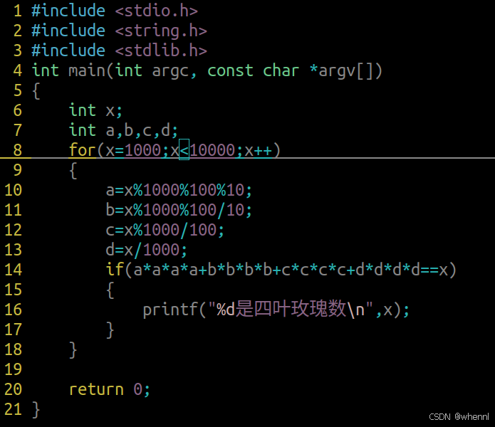 7、求1000-10000中的所有四叶玫瑰数(个位^4+十位^4+百位^4+千位^4==数本身)