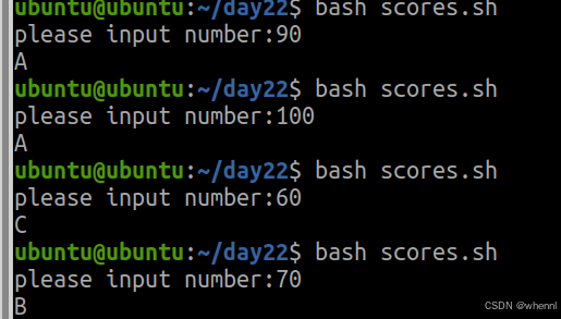 1.使用case..in实现等级判断,输入一个成绩,判断等级