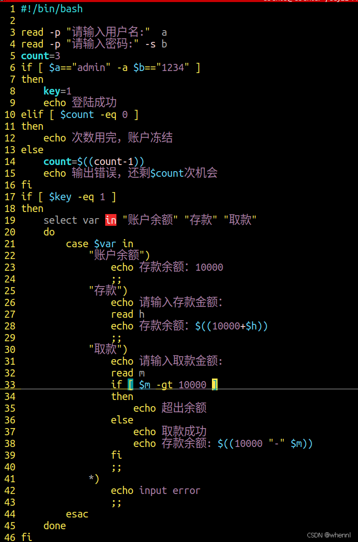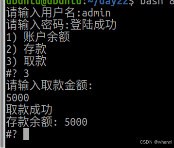 如果选择3,则输入存款金额,并提示 存款成功,余额的值