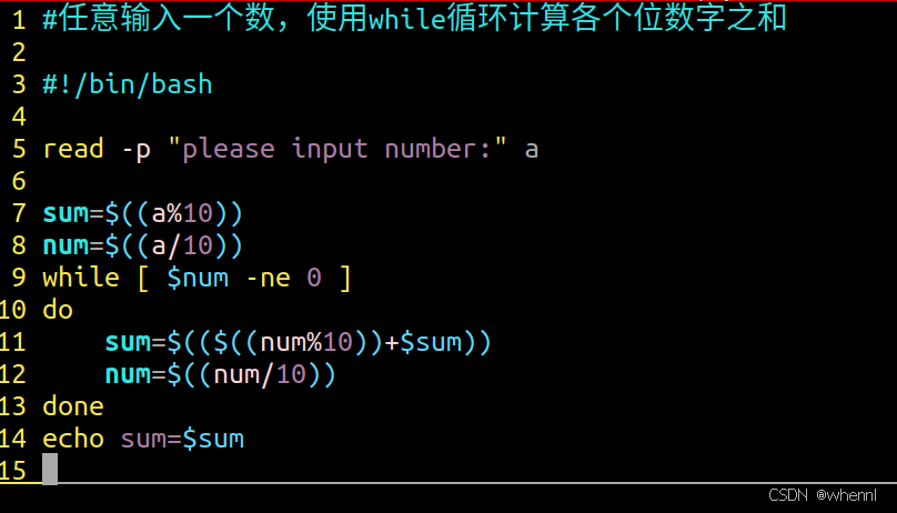 2.任意输入一个数,使用while循环计算各个位数字之和