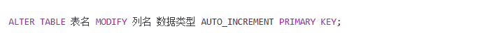 修改表并指定自增约束 MySQL中只支持将整型列改为自增列,所以修改表时只需添加AUTO_INCREMENT即可。语法如下: