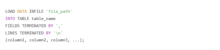 3.LOAD DATA INFILE 该方法可以从本地文件系统中导入数据到数据库中。语法如下: