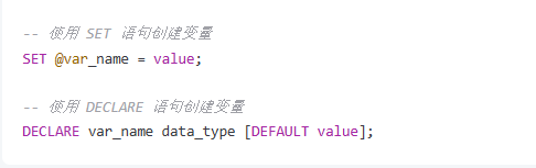 在 MySQL 中创建变量使用的是 SET 语句或 DECLARE 语句