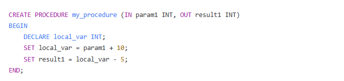 - 函数的参数和返回类型可以是任意 MySQL 数据类型,但是需要与函数体中的代码保持一致;