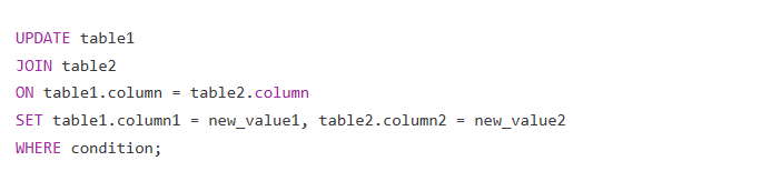 2.UPDATE JOIN 该方法可以更新多个表之间的关联数据,语法如下: