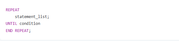 REPEAT 语句是另一种循环结构,不同于 WHILE 和 LOOP 循环只在条件满足时继续循环,REPEAT 循环在条件满足时停止。