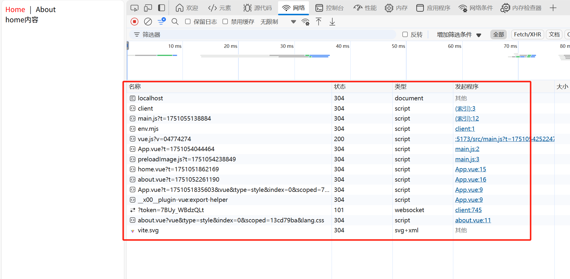 就比如我上面写的一个小例子,当点击About时,才会发送请求加载图片,现在我需要进入这个网页,还在Home中时就开始发送请求加载图片了,下面我就来演示一下如何实现的。